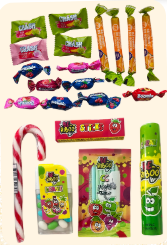 Dėžutėje – kruopščiai atrinkti, vaikų mėgstami saldumynai: saldainių asorti, riesta lazdelė, BeRiboo kramtomoji guma, BeRiboo dražė, BeRiboo CC Sticks su tatuiruote ir BeRiboo purškiamas skystas saldainis.