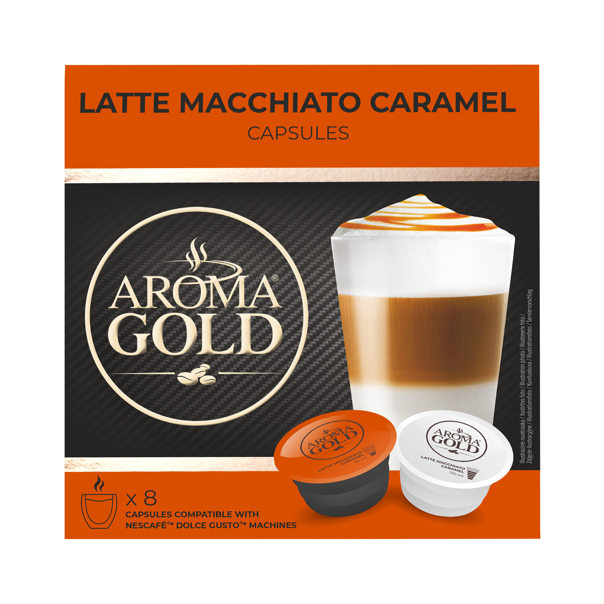 Kavos kapsulės Aroma Gold Latte Macchiato Caramel, 8+8kaps